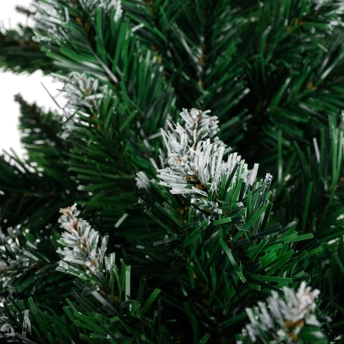 Zelene PVC iglice z belimi konci verno posnemajo zasnežene vejice in ustvarjajo elegantno zimsko atmosfero brez odpadanja.