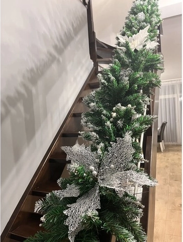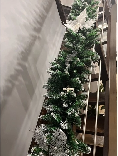 Girlanda je zasnovana za enostavno dekoriranje – lahko jo dopolnite z okrasnimi kroglami, pentljami, lučkami ali lesenimi okraski. Z možnostjo povezovanja več kosov ustvarite impresivne aranžmaje tudi na večjih površinah, znotraj in na prostem.