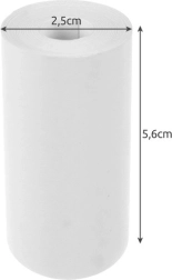 V embalaži boste našli 5 rolic belega papirja širine 5,6 cm in premera 2,5 cm, ki tehtajo 92 g in s pakiranjem 102 g. Zaradi kompaktnih dimenzij so primerne za enostavno uporabo in shranjevanje.
