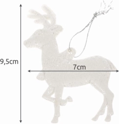 Dodajte svojemu božičnemu drevescu osupljiv čar s temi okraski v obliki jelenov. Set vsebuje 9 elegantno izdelanih jelenov, vsak prekrit s svetlečo površino.