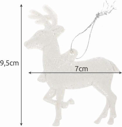 Elegantne božične okraske v obliki jelenov s svetlečo površino dodajo vašemu drevescu čar in sijoč lesk. Varne iz plastike in univerzalne za uporabo.