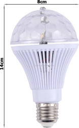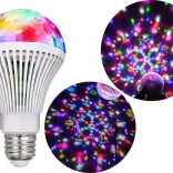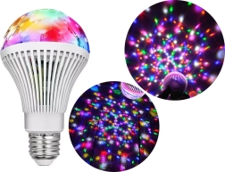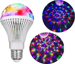 Ta vrteča RGB LED žarnica z univerzalnim navojem E27 ustvarja dinamične svetlobne vzorce zahvaljujoč prizmatični kupoli in vgrajenemu motorju. Barvni žarki se gladko spreminjajo in se razpršijo po stenah in stropu, zato je idealna za domače zabave, karaoke večere, otroška praznovanja in manjše diskoteke.