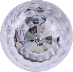 Vgrajen motor vrti prizmatično kupolo, ki lomi svetlobo v barvite vzorce. Barve se gladko izmenjujejo in zapolnijo prostor z impresivnimi projekcijami.