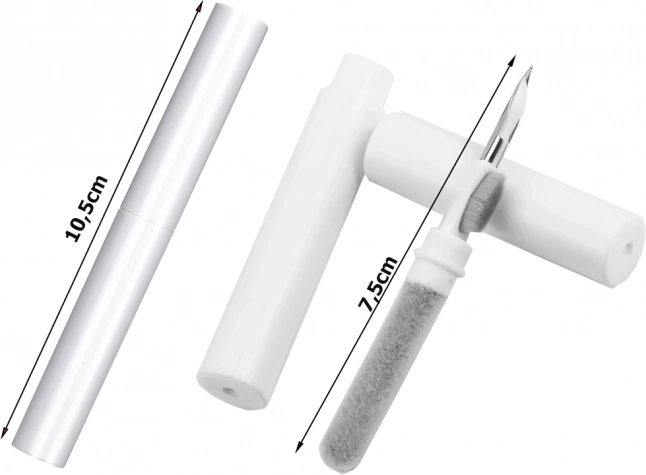 Praktično čistilno pero je zasnovano za natančno nego brezžičnih slušalk, pametnih telefonov, tablic, prenosnikov in fotoaparatov. Tri različne konice se spopadejo s prahom, ušesnim maslom in nečistočami na težje dostopnih mestih, zato povrnejo čist zvok in zanesljivo polnjenje.