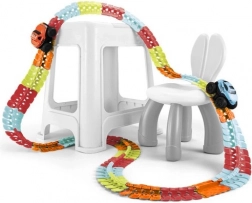 Ta fleksibilna dirkalna proga ponuja otrokom ure in ure zabave. Dele lahko preprosto spajate, obračate in preurejate, zato si vedno ustvarite novo in izvirno stezo. Avtomobilček zahvaljujoč vodilu v progi zmore zanke, spirale, naklone in ostre ovinke.