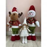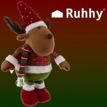 Jelen ima izrazite božične barve in dizajn z jelenovo kapo, okroglim trebuščkom in barvitim šalom, kar ga naredi za popolno božično dekoracijo.