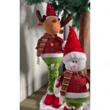 Jelen ima nastavljivo višino zahvaljujoč teleskopskim nogam in oblikovalni kapi, kar omogoča enostavno prilagoditev vašim dekoracijam. Poleg tega njegov vesel dizajn dopolnjujeta pisan plašč in šal, ki prispevata k celotnemu božičnemu vzdušju.