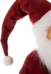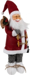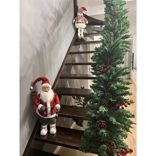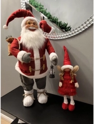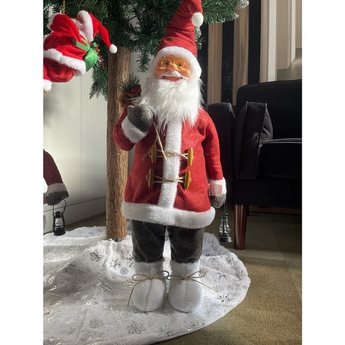 Ta očarljivi SANTA v tradicionalnem rdečem plašču z belim robom in ikončnimi zlatimi očali prinese v notranjost toplino in čar božiča. Idealen je kot dominantna dekoracija na tleh, ob božičnem drevesu ali v izložbi.