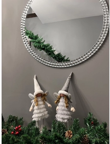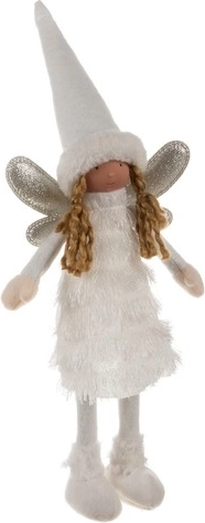 Elegantna božična figurica angela/škrata v snežno belem videzu vnese v notranjost čar božiča. Ima bleščeča krilca, stabilno obutev s čvrstim podplatom in zimski outfit z rolko obleko ter kapico s krznom. Odlično se poda na komodo, okensko polico, k kaminu ali pod jelko ter lepo dopolni praznično dekoracijo v modernem ali klasičnem slogu.