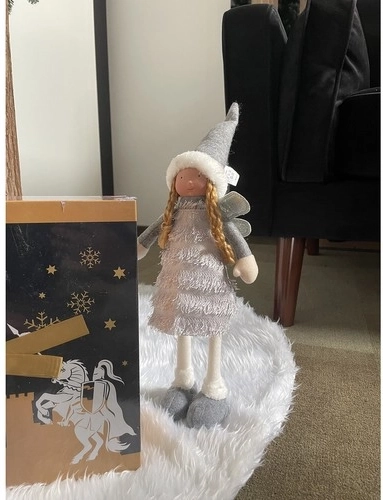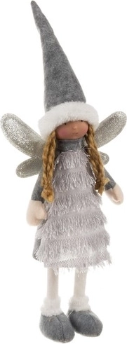 Ta elegantna božična figurica vile/angela v kombinaciji sive, bele in srebrne prinaša v dom prijetno zimsko atmosfero. Bleščeča krila in mehke tkanine ustvarjajo učinek čarobnosti in veselja, ki je značilen za praznike.