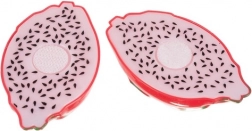 Plodovi so razdeljeni in povezani z ježkom – otroci jih lahko varno prerežejo z nožkom na deski in nato spet sestavijo.