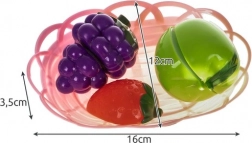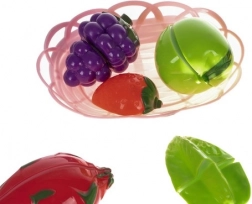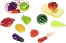 Ta barvit komplet sadja in zelenjave je odličen dodatek k otroški kuhinji. Deli so povezani z ježkom, zato jih lahko otroci varno režejo s priloženim nožem na deski in nato ponovno spojijo. Realistične oblike in žive barve pritegnejo pozornost ter spodbujajo učenje skozi igro.