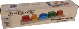 Leseni sortirnik in sestavljanka KRUZZEL je pametna izobraževalna igrača za otroke od 2 let naprej. Barvni koščki v osnovnih oblikah – krog, trikotnik, kvadrat, pravokotnik in peterokotnik – se natikajo na zatiče z ovirami, kar otroke motivira k manipulaciji in natančnemu gibanju prstov. Igra podpira prepoznavanje barv in oblik, potrpežljivost ter spomin.