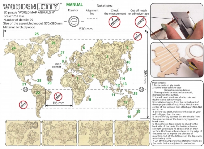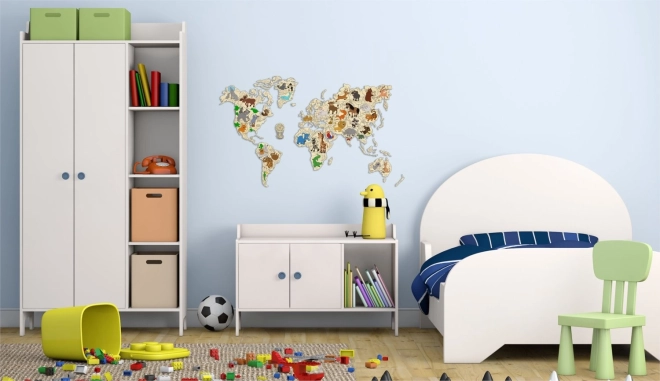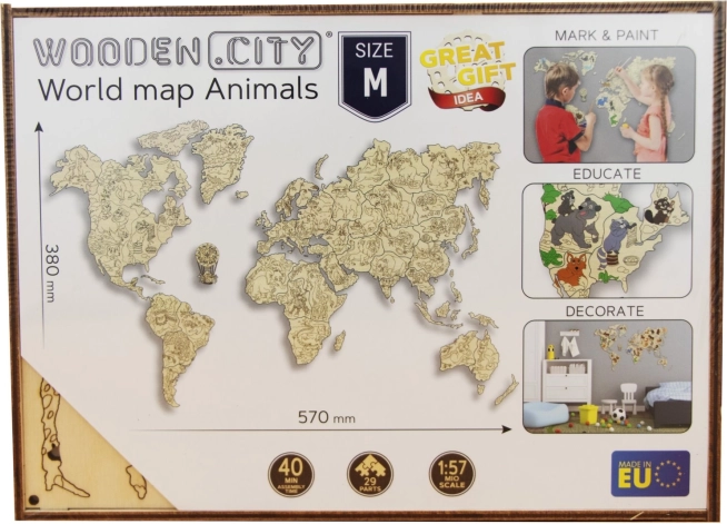 - Leseni stenski zemljevid z živalmi