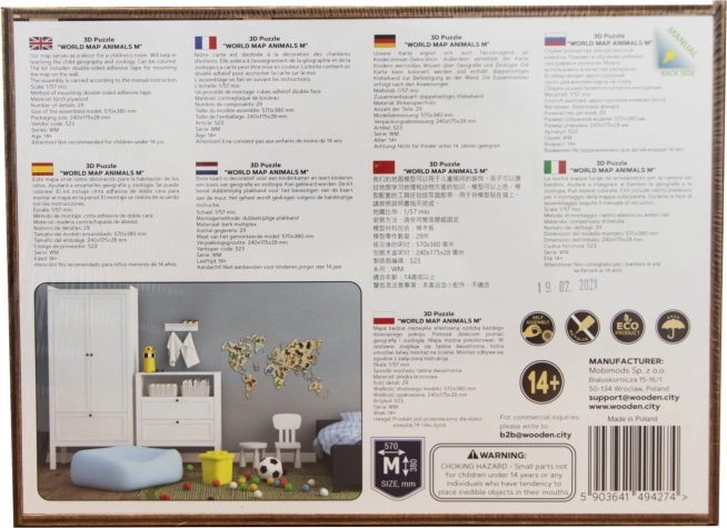 Stilni leseni zemljevid sveta z živalmi znamke WOODEN CITY je čudovita dekoracija za otroško sobo, ki spodbuja ustvarjalnost ter zanimanje za naravo in geografijo. Zahvaljujoč enostavni namestitvi z dvostranskim lepilnim trakom ga hitro pritrdite na steno, vrata ali omaro. Izdelan je iz kakovostne brestove vezane plošče in kar vabi k barvanju.