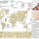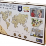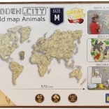 Odkrijte svet na igriv način. Leseni zemljevid z živalmi v merilu 1 : 57 mio je natančno lasersko izrezan iz brestove vezane plošče, zato izstopa s čistimi linijami in naravno strukturo lesa. Odličen je kot dekoracija in kot učni pripomoček – otroci si na zabaven način razširijo znanje o celinah, oceanih in živalih.