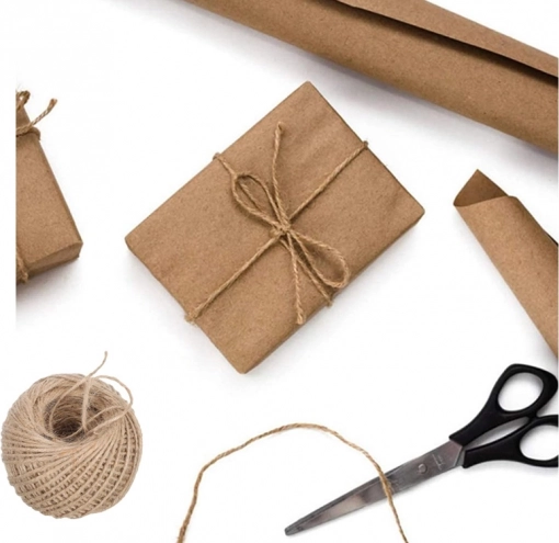 Naravna jutasta vrvica odlično dopolni recikliran papir in ustvari lepo, trajnostno zavijanje brez plastike.