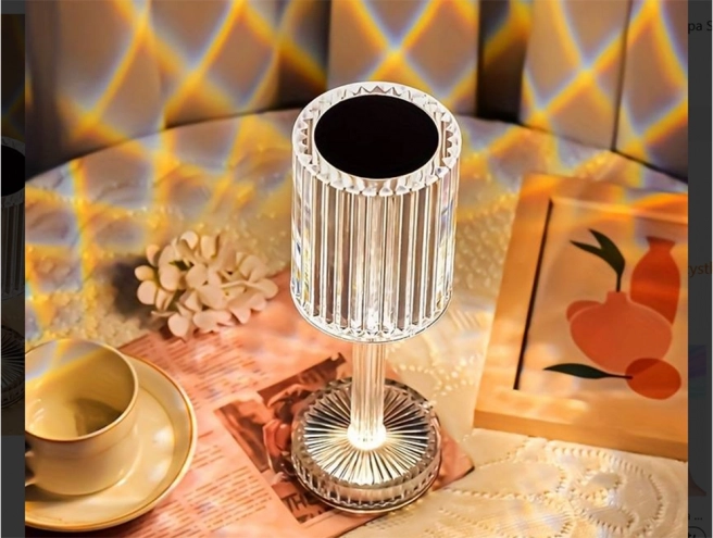 Rebrast, prosojen dizajn ob vklopu ustvari izrazite vzorce na okoliških površinah. Idealna kot nočna lučka in dekorativen kos za notranjo opremo.
