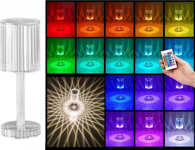 Ta dekorativna kristalna LED svetilka vsak kotiček spremeni v prijetno oazo. Prosojno, rebrasto ohišje na stenah in mizi ustvarja čudovite optične učinke, energetsko varčne LED pa nudijo prijetno, dolgotrajno osvetlitev. Upravljanje je izjemno udobno – barve in načine preklapljate z daljinskim upravljalnikom ali na dotik.