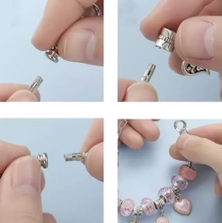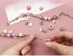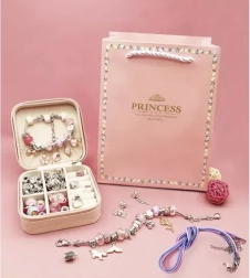 Komplet vsebuje pestro zbirko obeskov in osnov za zapestnice in verižice, ki omogočajo široko paleto oblikovnih možnosti.