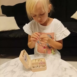 Ta ustvarjalni komplet je idealna izbira za otroke, ki imajo radi ustvarjanje in oblikovanje. Vsebuje veliko pestrost obeskov v različnih oblikah in barvah, kar omogoča ustvarjanje unikatnega nakita. Vse je varno shranjeno v prenosljivem kovčku z zadrgo, kar olajša prenašanje v šolo, k prijateljem ali na vrt.