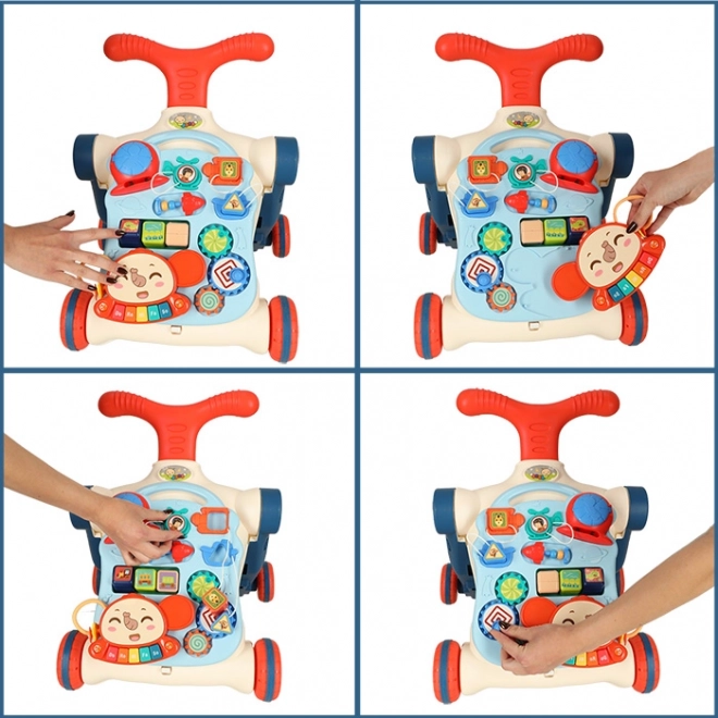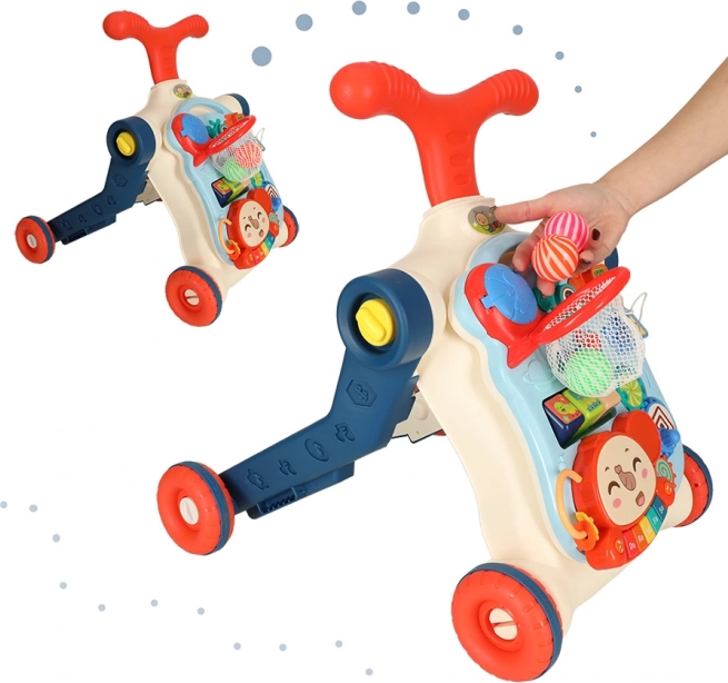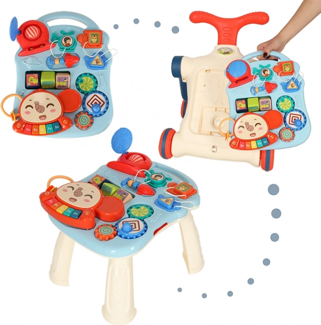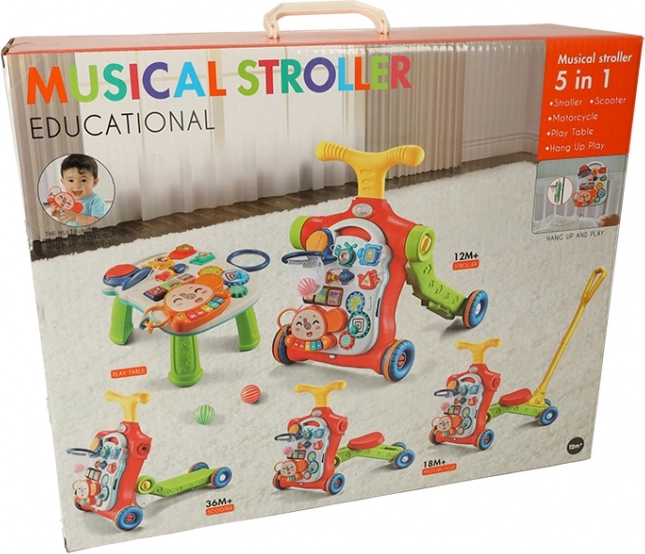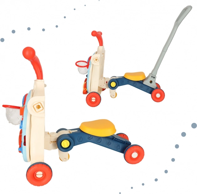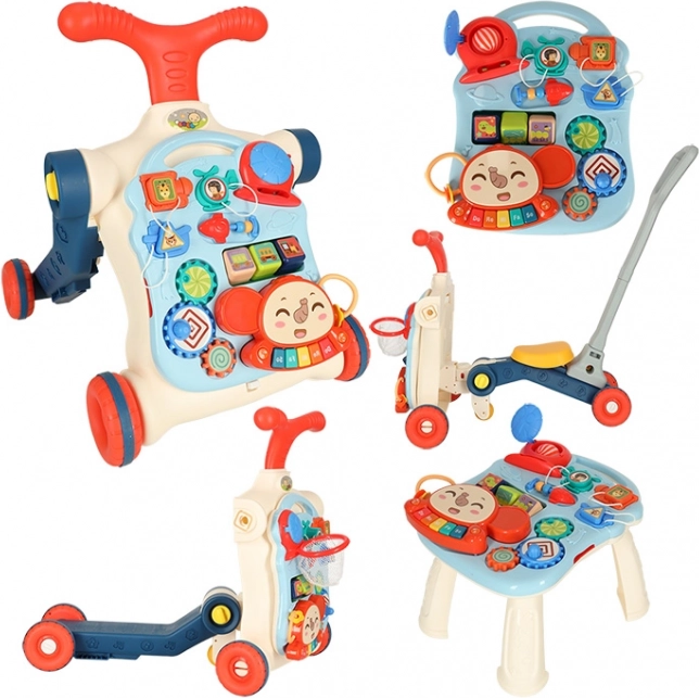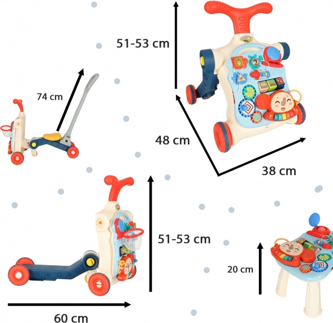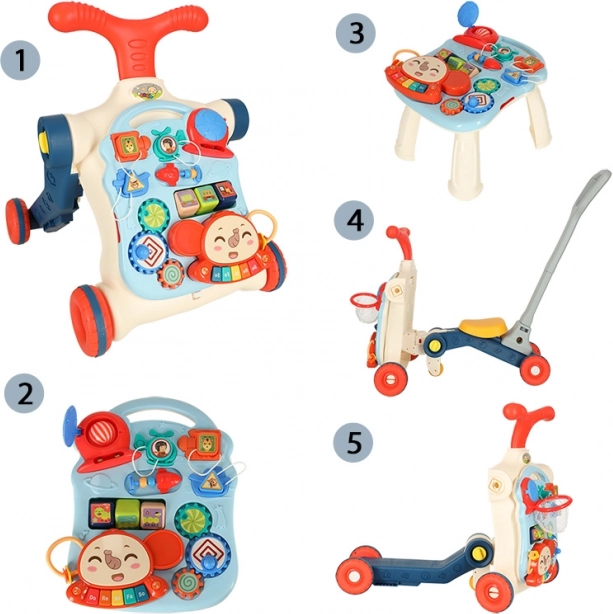 Večnamenska otroška hojca in interaktivna miza 5v1 ponuja pet različnih modifikacij glede na starost otroka: hojca, poganjalec, tekaško kolo, interaktivna miza in viseča tabla. Ta izdelek se razvija skupaj z vašim otrokom, ne da bi morali kupovati nove igrače.