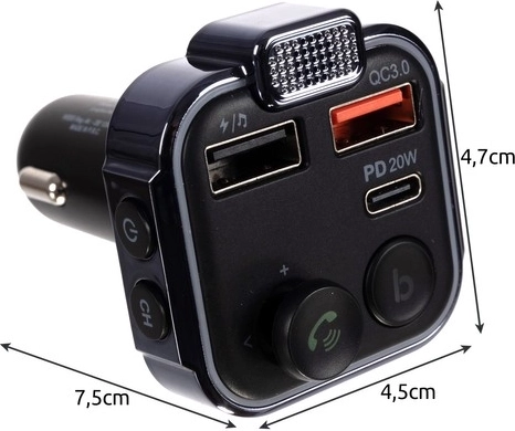 Praktičen Bluetooth FM oddajnik z avtomobilskim polnilnikom XTROBB spremeni vsak avtoradio v moderno multimedijsko središče. Ponuja Bluetooth 5.0, prostoročno telefoniranje, dva USB in USB‑C z inteligentnim hitrim polnjenjem, LED-zaslon in deluje v vozilih z 12–24 V. Združljiv z iOS in Android ter podpira predvajanje z USB-ključka.