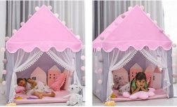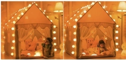 Otroški sobi pričarajte pravljično vzdušje. Ta tekstilni šotor v obliki hišice ustvari prijeten kotiček za branje, počitek in neskončne igre. V kompletu je veriga 20 LED cotton balls s toplo belo barvo svetlobe, ki ustvari prijetno razpoloženje. Vhod z zavesami in dve okenci iz fine mrežice zagotavljata zasebnost in kroženje zraka.