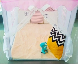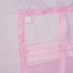 Velikost 130 × 100 × 120 cm ponuja dovolj prostora za knjige, blazine in najljubše igrače. Dve okenci iz mrežice in zavese pri vhodu zagotavljajo zasebnost in dobro prezračevanje.