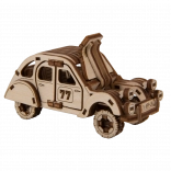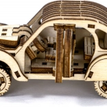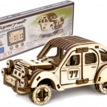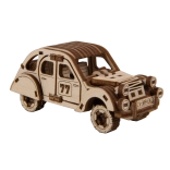 Ta model rally vozila ponuja privlačno kombinacijo kreativne zabave in elegantne dekoracije za notranje prostore. Deli iz vrhunskega brezovega vezanega lesa se natančno prilegajo – brez lepila in vijakov – končni rezultat pa je impresiven retro avtomobil s številnimi drobnimi detajli.