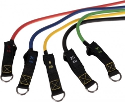 Pet barvno ločenih gum pokriva celoten razpon obremenitev. S kombinacijo več gum hkrati si enostavno prilagodite upor za zgornji in spodnji del telesa.