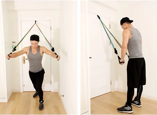 Vratno sidro, ročaji in trakovi za gležnje razširjajo možnosti treninga. Priložena je praktična vrečka za enostavno prenašanje.