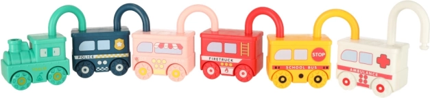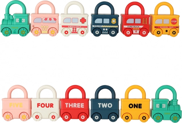 Odkrijte pametno Montessori igračo, ki razvija fino motoriko, koordinacijo oko–roka in logično mišljenje. Vsako vozilo ima svojo ključavnico, ki jo otrok odpre s pravilnim ključem – po številkah, po številu koles na sliki ali z metodo poskusa in napake. Po odklepanju je mogoče avtomobilčke povezati v pisani vlak in se podati na namišljeno potovanje po sobi.