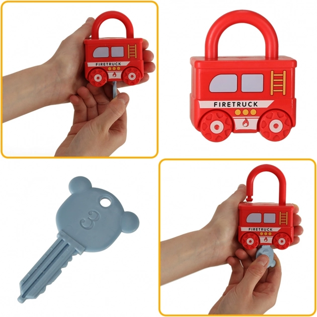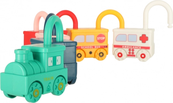 Odpiranje ključavnic, obračanje ključev in povezovanje vagončkov krepi prstke in izboljšuje koordinacijo oko–roka že od najnežnejše starosti.