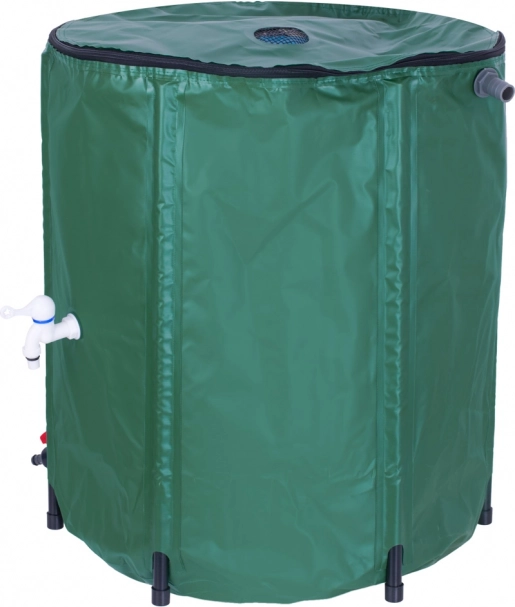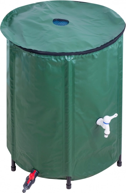 Premišljena konstrukcija z nogami in ojačitvenimi cevmi zagotavlja stabilnost, medtem ko preliv v zgornjem delu ščiti rezervoar pred prelivanjem. Vodo udobno odvzamete preko pipe, spodnjega izpustnega ventila ali z odpetjem pokrova. Po sezoni sod zložite na kompaktne dimenzije in ga enostavno shranite.