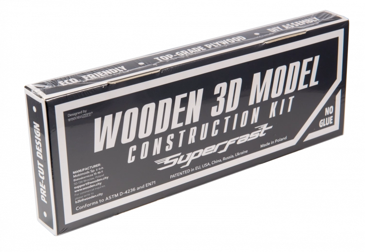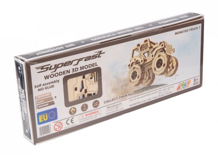 Privoščite si veselje ob sestavljanju z lesenimi 3D sestavljankami Monster Truck Superfast. Zaradi natančnih laserskih izrezov se deli popolno prilegajo, rezultat pa je stilski model s funkcionalnim gibanjem koles – idealen za razstavljanje ali kratke vožnje po mizi.