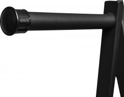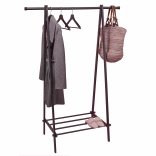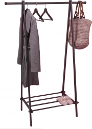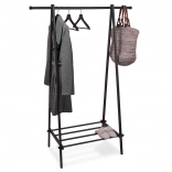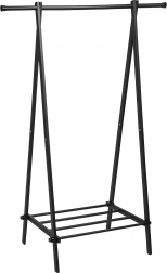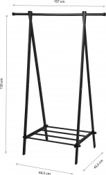 Zgornja letvica za obešanje sprejme jakne, plašče in srajce, medtem ko spodnja polica nudi prostor za obutev, škatle ali dodatke. Robustno, prašno lakirano jeklo zagotavlja dolgo življenjsko dobo in enostavno vzdrževanje.