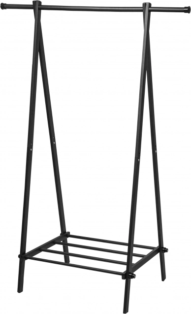 Praktično kovinsko obešalo z zgornjo letvijo za obešalnike in spodnjo polico za čevlje in dodatke vam pomaga ohranjati red v predsobi, spalnici in garderobi. Zahvaljujoč odporni jekleni konstrukciji s prašnim lakiranjem je stabilno, enostavno za čiščenje in odlično pristaja modernemu interierju.