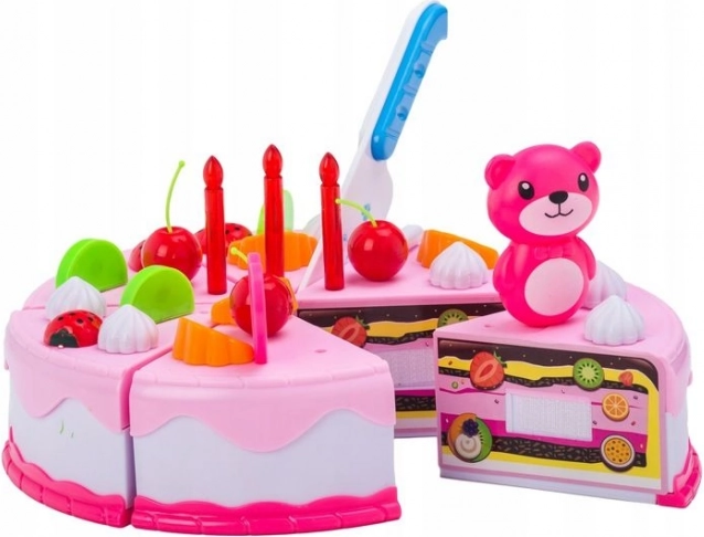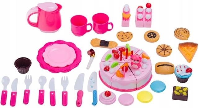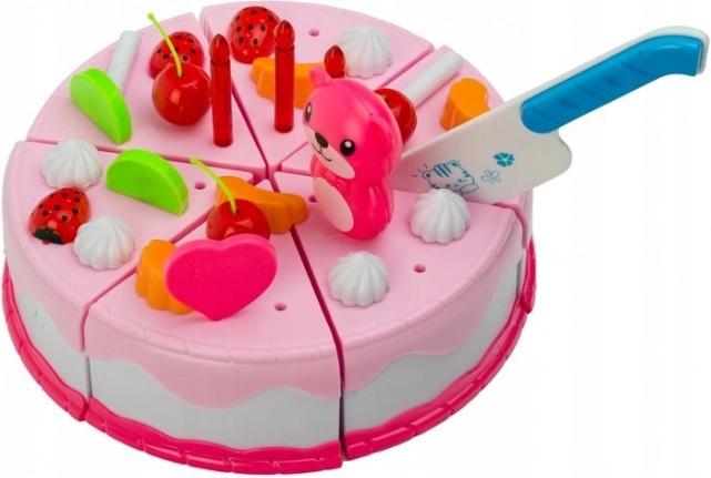 Ta barvit komplet rojstnodnevne torte je idealen za ustvarjalno igro zabave. Deli torte so povezani z ježkom, zato jih je mogoče varno »odrezati« s priloženim nožem in znova spojiti. Otroci preizkusijo strežbo gostov, serviranje in okraševanje po lastni domišljiji – pri tem pa nevsiljivo urijo koordinacijo rok in prstov.