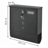 Ta moderen poštni nabiralnik je idealna izbira za katero koli ograjo ali fasado hiše. Njegov univerzalni dizajn ga naredi za popoln dodatek za stanovanjske, komercialne in pisarniške objekte. Nabiralnik je opremljen s kontrolnimi okenci, s katerimi zlahka preverite, ali imate novo pošto.
