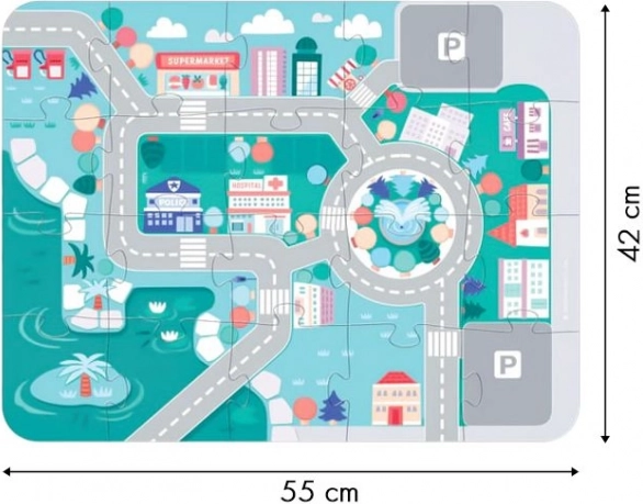 Ta set je pobarvan z okolju prijaznimi barvami, ki so varne za otroke. Mestna cesta na sestavljanki omogoča ustvarjanje kompleksnega igrišča, ki spodbuja kreativno in interaktivno igro.