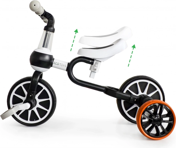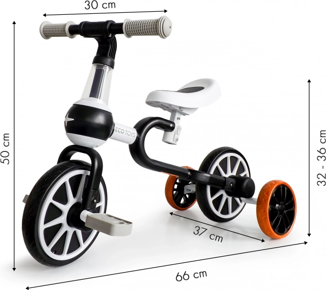 Poganjalec in kolo 4v1 ECOTOYS je zasnovan z mislijo na potrebe najmlajših. Ponuja štiri različne konfiguracije, zato je primeren za različne faze učenja vožnje. Omogoča prehod od poganjalca s pritrjenimi pomožnimi kolesi do standardnega kolesa brez podpornih koles.