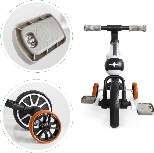 Pedale je mogoče preprosto namestiti ali odstraniti, kar bistveno spremeni značaj igre in podpira rast otrokove samozavesti pri učenju vožnje s kolesom.