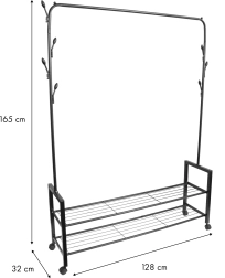 Stoječe obešalo ModernHome je odlična rešitev za vse, ki jim primanjkuje prostora za obešanje oblačil brez potrebe po omari. Zahvaljujoč vzdržljivim kolescem ga je enostavno premikati brez velikega napora.