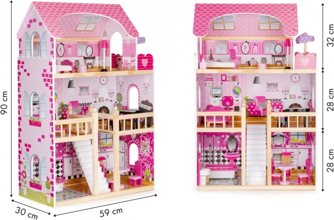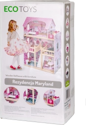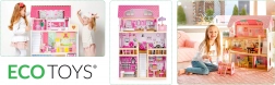 Hiška za punčke ECOTOYS je zasnovana za kreativno igro in razvoj domišljije otrok. Sestavljena je iz treh neodvisnih nivojev, skupaj s petimi prostori, ki popolnoma posnemajo pravi dom. Vsaka soba je opremljena s pohištvom in dekoracijami, ki jih je mogoče enostavno premikati glede na otrokove želje.