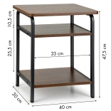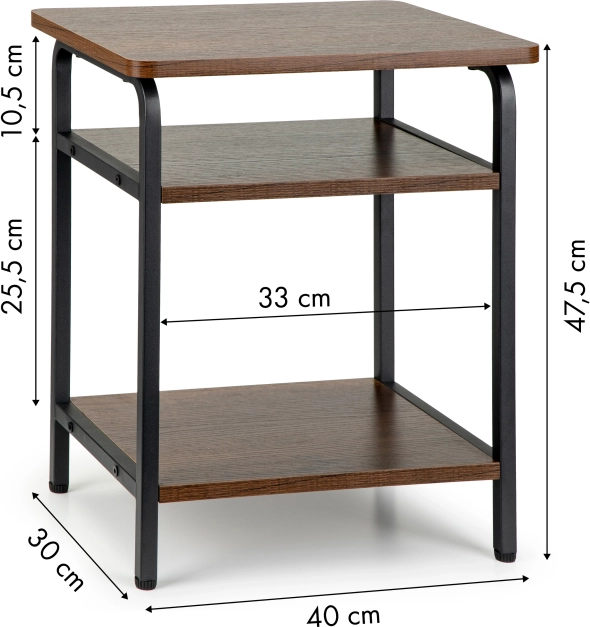 Ta mizica je zasnovana v modernem loftovem slogu, ki združuje industrijske prvine z elegantnim dizajnom. Njeni trije nivoji ponujajo dovolj prostora za dekoracije, knjige ali druge predmete, zato je ne le estetski, temveč tudi praktičen dodatek vašemu interierju.