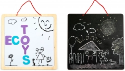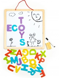 Učna 3v1 magnetna tabla znamke ECOTOYS je namenjena otrokom od 3 let naprej. Kombinacija tradicionalne črne table in bele table za flomastre omogoča otrokom risanje in učenje besed s pomočjo magnetnih črk. Robusta lesena konstrukcija zagotavlja vzdržljivost in varnost med igro.