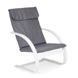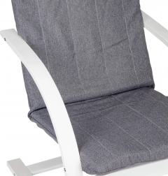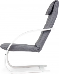 Odkrijte udobje v skandinavskem slogu. Ta finski gugalni stol znamke ModernHome prinaša pomirjujoče guganje, ki sprošča mišice in um, hkrati pa odlično dopolni tako moderne kot klasične interierje. Sedalo iz vzdržljive tkanine z mehko peno in ergonomično oblikovan okvir skrbita za prijetno oporo hrbtu.