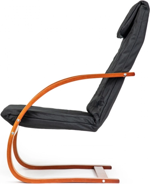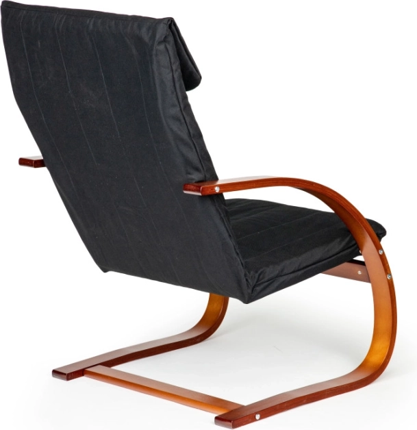 Finski viseči lounge stol ModernHome za dnevno sobo – črna tkanina, orehov les