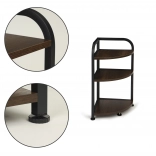Polica ima laminirano površino s temno rjavim lesnim vzorcem, ki je odporen proti madežem in vsakodnevni uporabi. Nastavljive nogice omogočajo popolno pozicioniranje in izravnavo police na neravnih površinah.